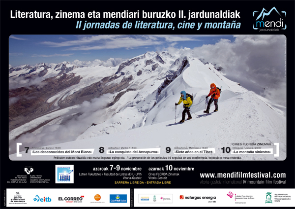 Del Polo Sur a la conquista del Annapurna con el cámara de televisión y montañero Javier Baraizarra , ahora responsable del Mendi Film Festival de Vitoria-Gasteiz. Nos presentará las II Jornada de cine, literatura y montaña. Y es que cómo ya sabemos bien un buen libro o una buena película pueden aportar más que un viaje. Queremos conocer los temas de este año y que nos adelante algo del Festival de Cine de Montaña que mejores propuestas expone cada año.