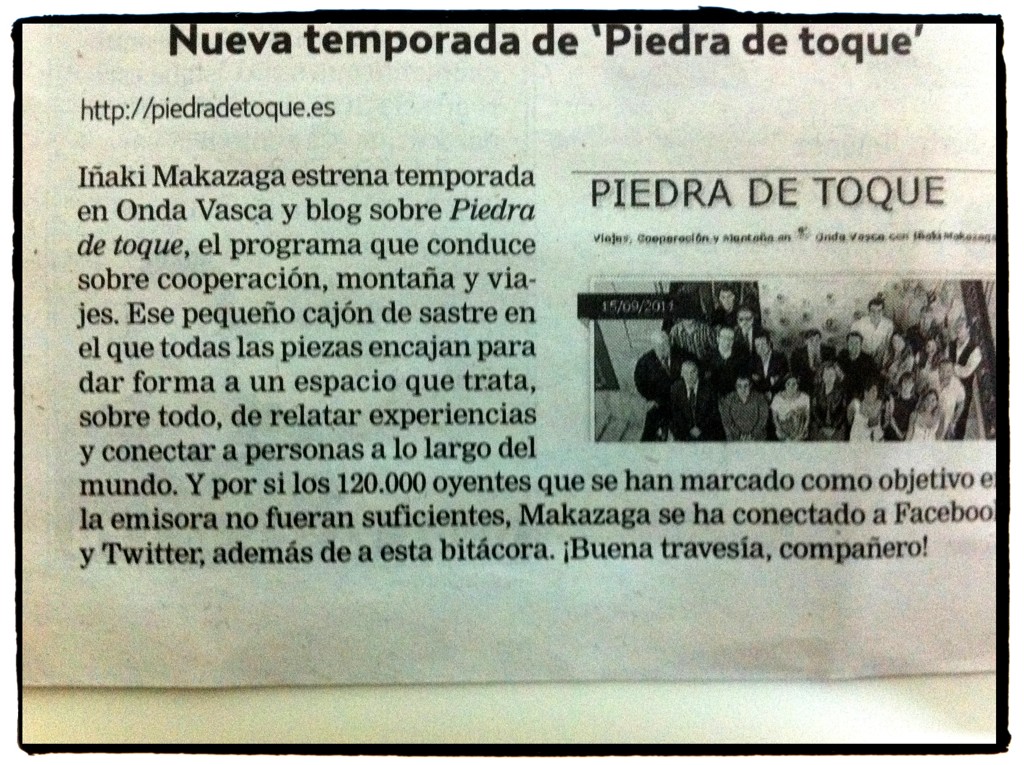 Un buen balance de nuestra nueva temporada. Desde que lanzamos el blog, hemos aparecido en el diario DEIA y ahora invitados al principal evento de blogs de viajes. Sin duda, todo sea por transmitir la pasión por descubrir nuevos mundos, nuevas realidades.